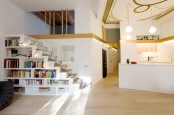 This 95 square meter flat is designed by French architecture and design studio, Ecole. It’s facing the Eglise Saint-Gervais on one side and the Hôtel de Ville de Paris on the other. The whole of the the two top floors of an 18th century building are occupied by it. Of course the flat is a restoration of the existing space to become suitable for a contemporary lifestyle. The first floor become a large open space where the entrance, the living room and the kitchen form one single continuity. The guest space that consists of a bedroom and a bathroom is also located on that floor. An amazing steel staircase links the living room to the owner’s private space underneath the roof. Even though the flat features a black and white minimalist decor there is a touch of oldness thanks to a georgeous fireplace and natural wooden floors.